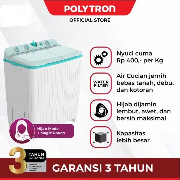 PROMO Polytron Mesin Cuci 2 Tabung 7Kg Samba Series PWM 7076 Twin Tube 7 Kg ORIGINAL