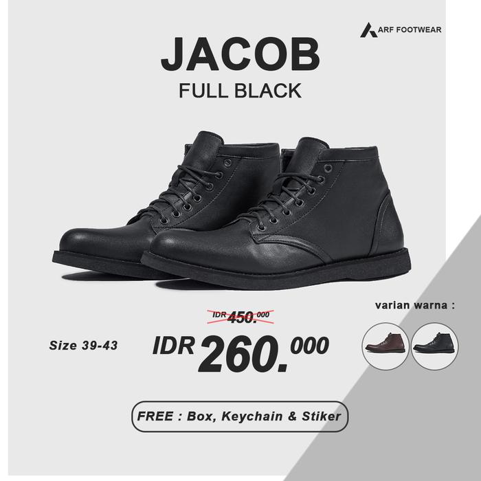ARF Jacob FullBlack Sepatu Boots Kulit Hitam Pria Wanita Formal Casual Kerja Kantor Shoes