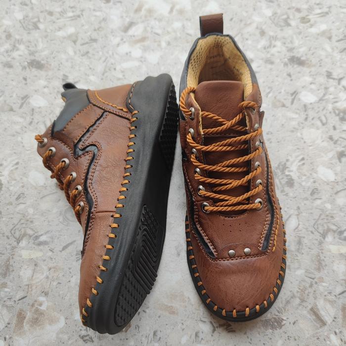 Prelesty Kulit Asli Original Sepatu Pria Tali Boots Tinggi Casual Semi Forml Cowok Kerja Touring