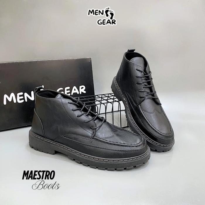 MENFOOTGEAR Maestro Sepatu Boots Pria Sepatu High Shoes Karet Empuk Kerja Hitam
