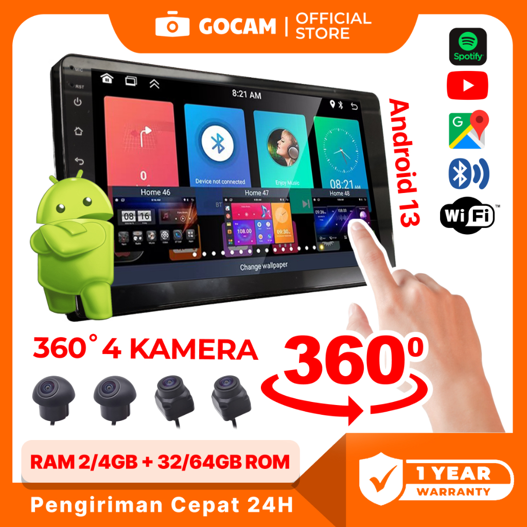 [] GOCAM Head Unit Android 360 Kamera 2/4+32/64G 9/10inch + Cooling System Car Android 13 Carplay Navigasi Kamera M