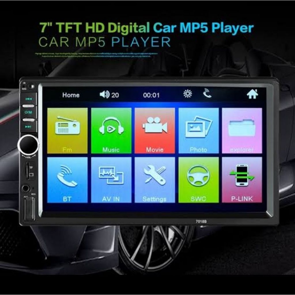 Car Head Unit Bluetooth Tape MP5 Multimedia Player Mobil 2 DIN 7 Inch HD Touchscreen Plug ISO Multifungsi
