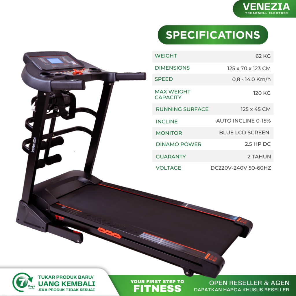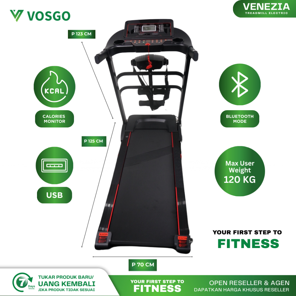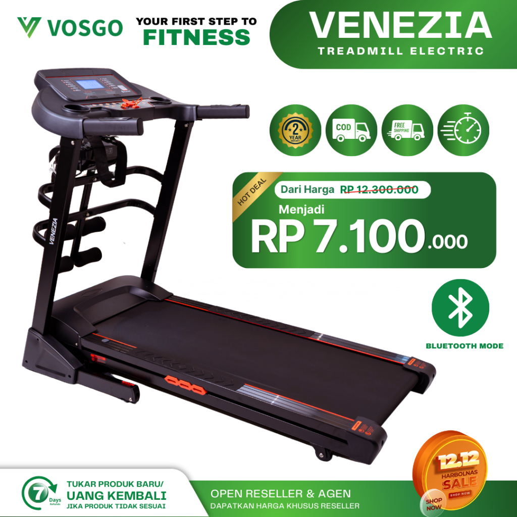 VOSGO Alat Olahraga Fitness Treadmill Elektrik Listrik 2,5 HP Murah Garansi Resmi 2 Tahun VENEZIA