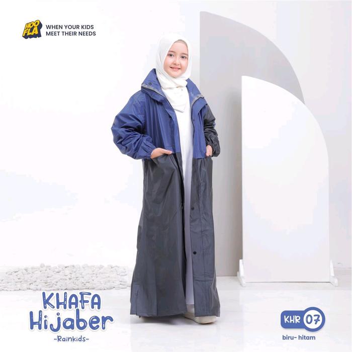 JAS HUJAN ANAK HIJABER/KHAFA HIJABER RAINKIDS HOOFLA USIA 6-13 TAHUN HOOFLAKIDS TEBAL GAMIS - CREAM-HITAM, S(6-8 TAHUN)