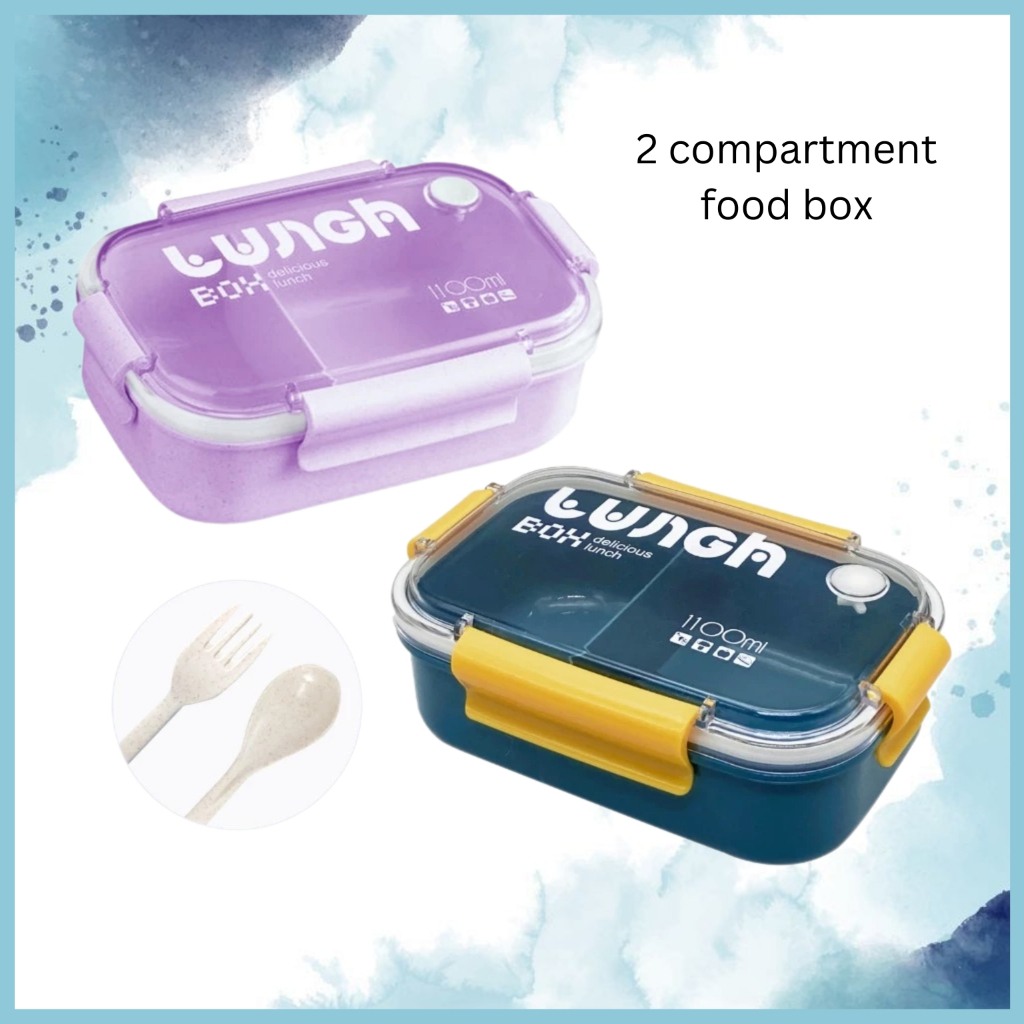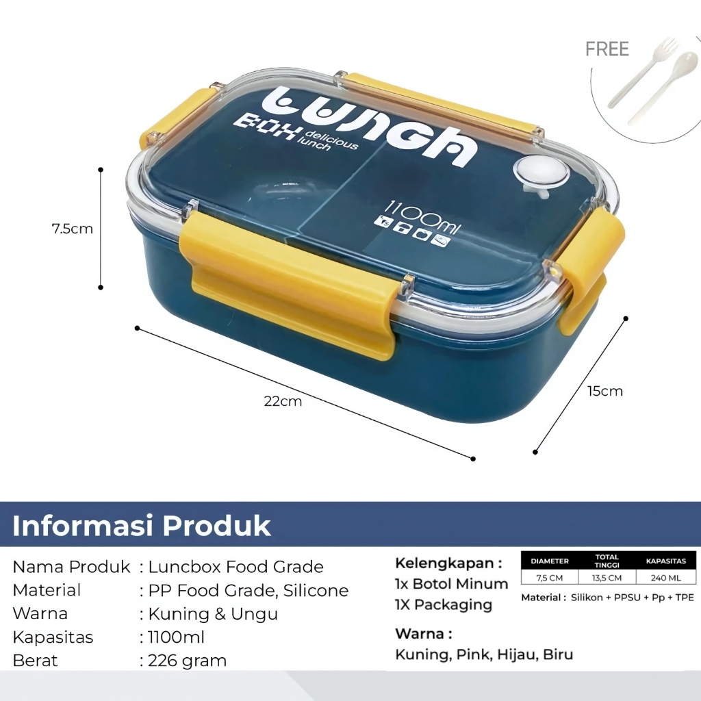 Lunch Box Anti Tumpah Kotak Makan BPA Free 1100ml Tempat Bekal Sekolah Kantor Free Sendok Garpu Murah Gratis Ongkir