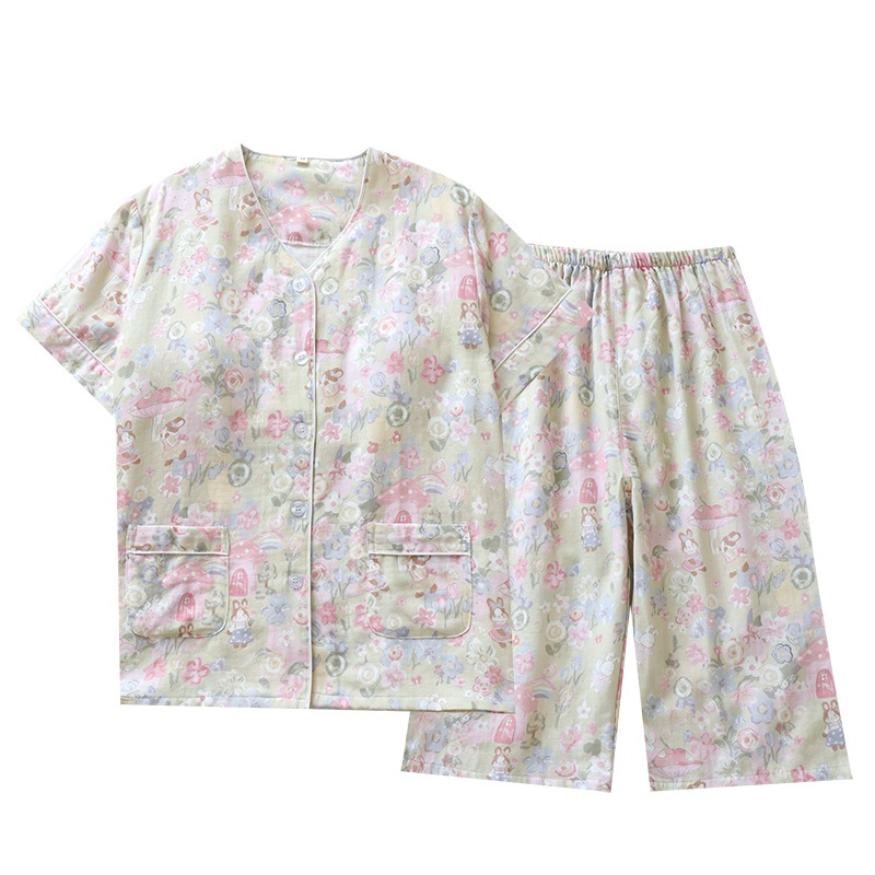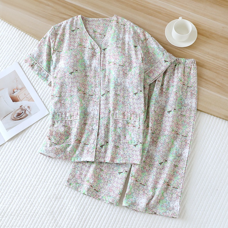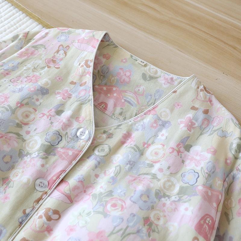 Piyama Wanita V Neck Cardigan + Celana Pendek Bahan Katun Lembut & Breathable, Dilengkapi Bra Pad,daster kekinian terbar