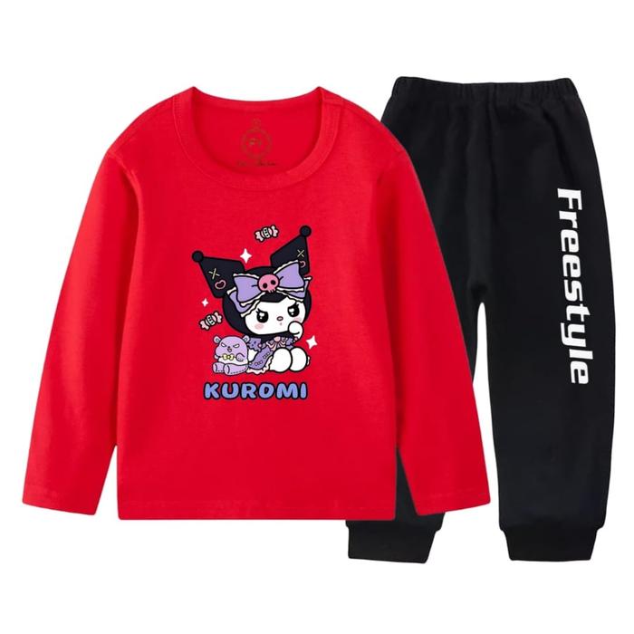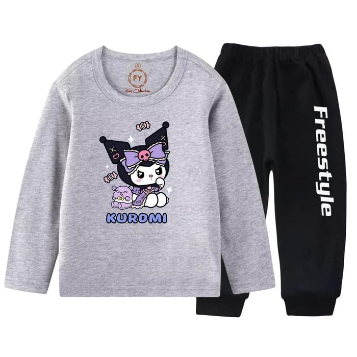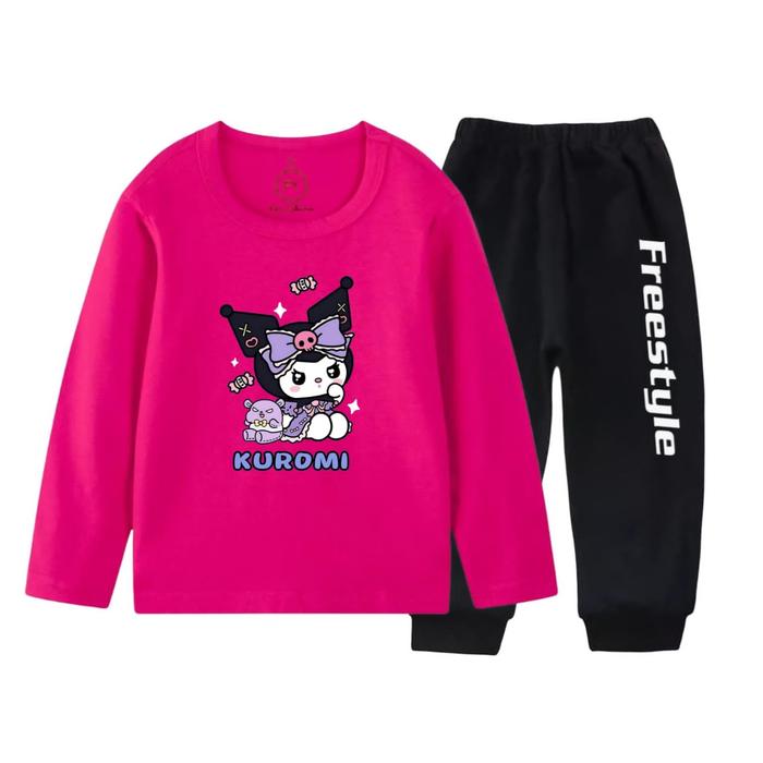 SETELAN LENGAN PJG SET PANJANG ANAK PEREMPUAN MOTIF KUROMI PERMEN PJ - PUTIH, 2