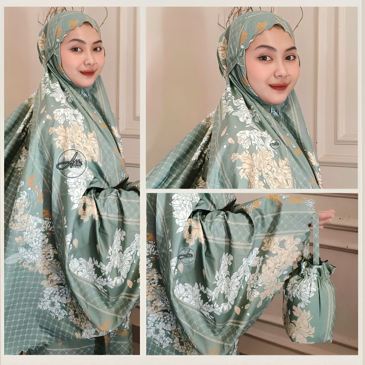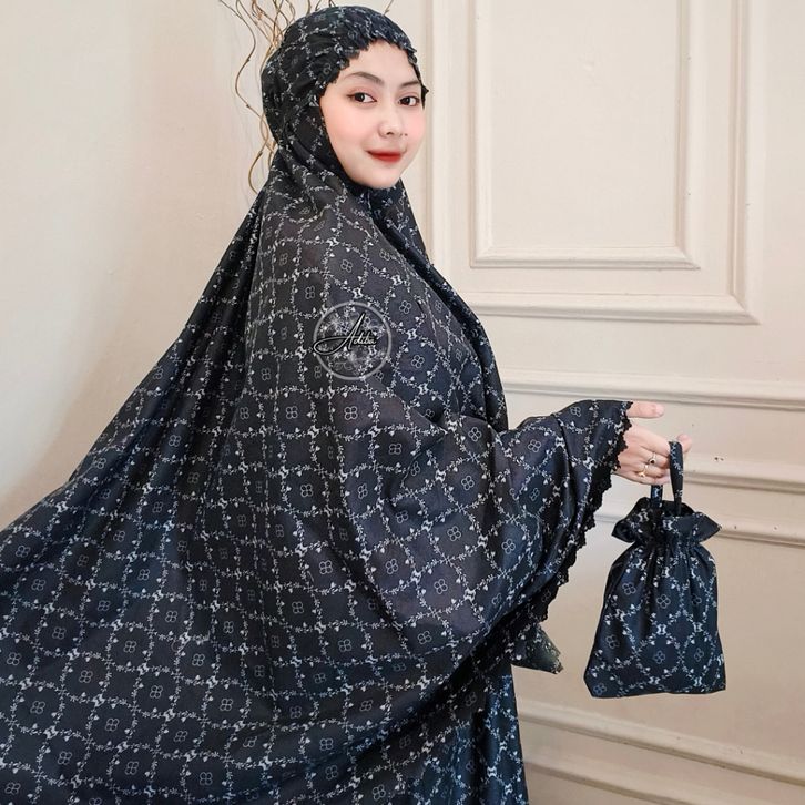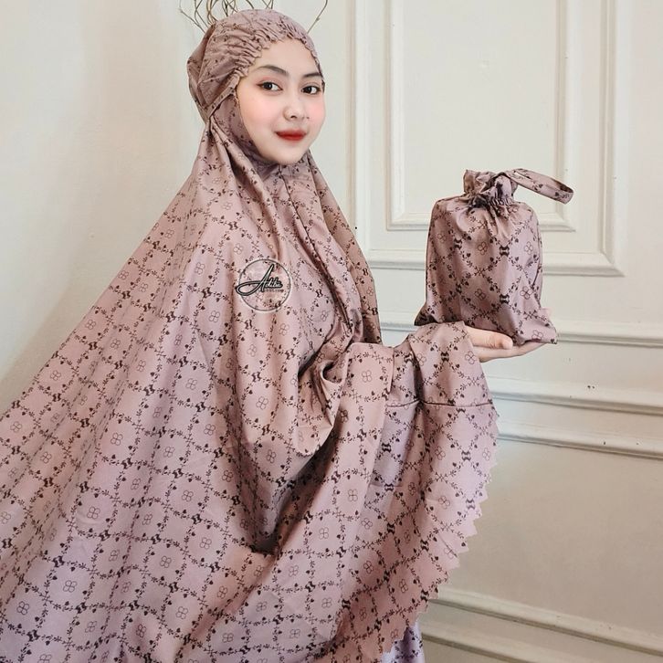 Mukena traveling pouch mini 2in1 Laser Cut Motif Bahan Katun Micro Premium Free Tasbih