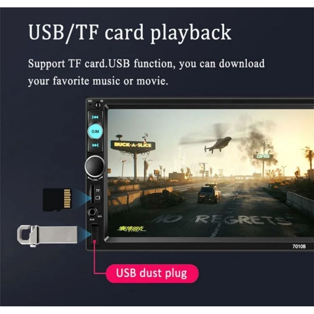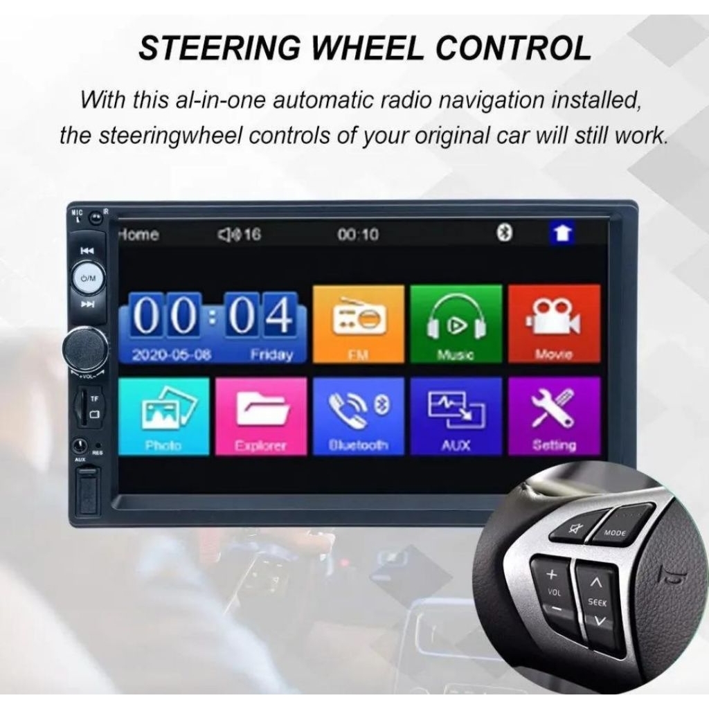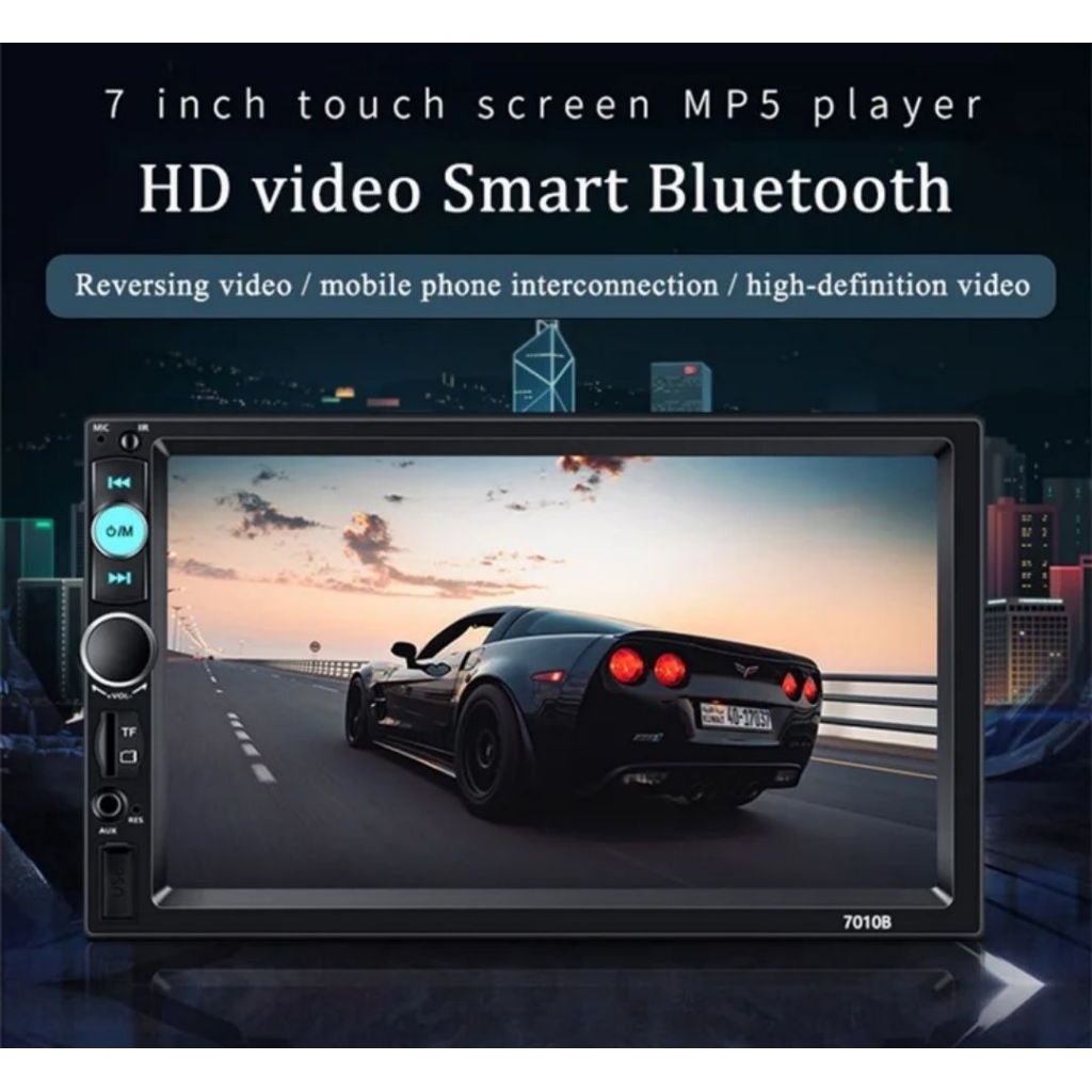 Car Bluetooth 5.0 Head Unit Mobil Double DIN MP5 Multimedia Player 7 Inc Digital HD Touchscreen with 2 Remote & Rea
