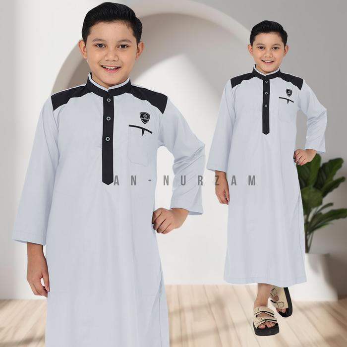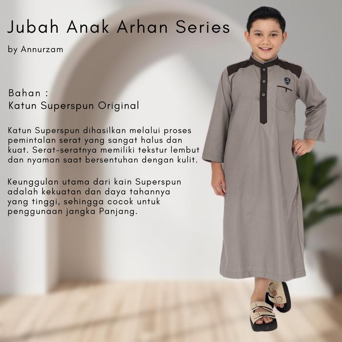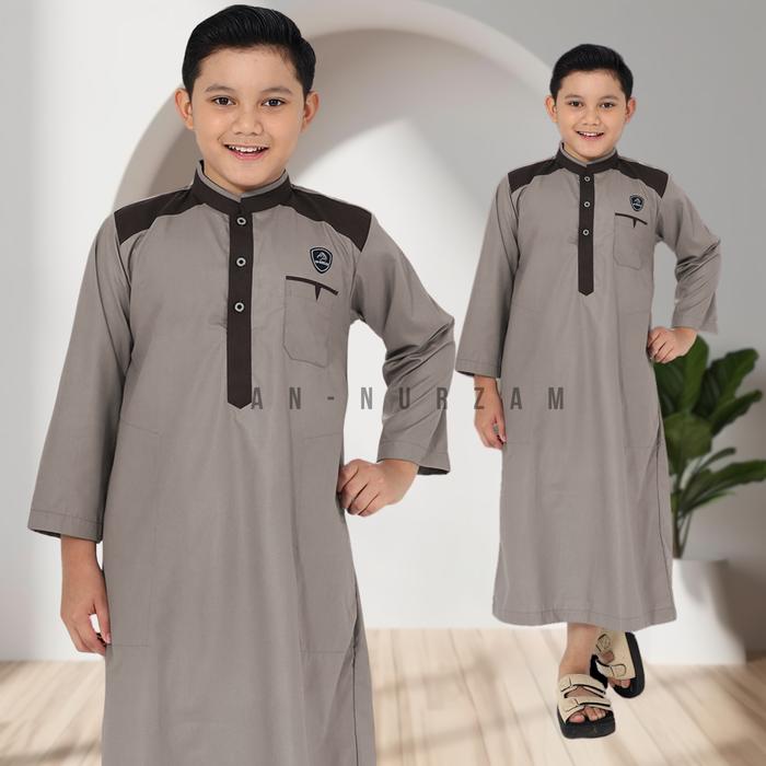 JUBAH ANAK / GAMIS ANAK PREMIUM IMPORT UNTUK 9-16 TAHUN ARHAN SERIES ANNURZAM - ABU, NO.12 L 11-12 TAHUN
