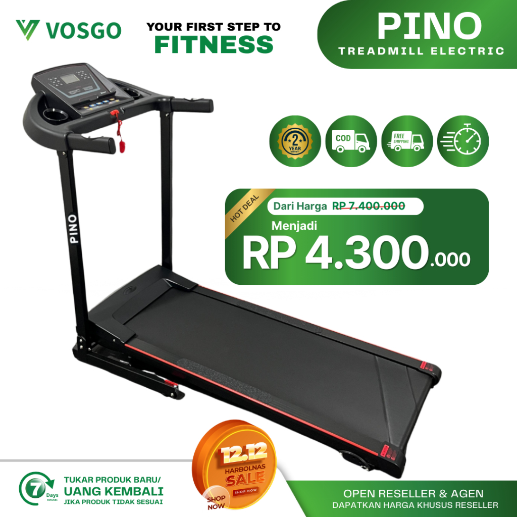 VOSGO Fitness Pino Alat Olahraga Treadmill Elektrik Treadmil Listrik 2 HP Murah