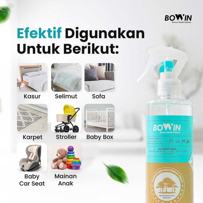 BOWIN BED SPRAY ANTI TUNGAU & JAMUR KASUR 250ML DISINFECTANT SPRAY EFEKTIF 99.9 PERSEN MEMBUNUH MIKROBAKTERI AMAN IBU HAMIL & BAYI - BED SPRAY
