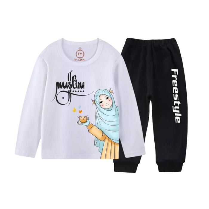 SETELAN LENGAN PANJANG SET JOGGER ANAK PEREMPUAN MOTIF MUSLIM PUTIH - SIZE 2