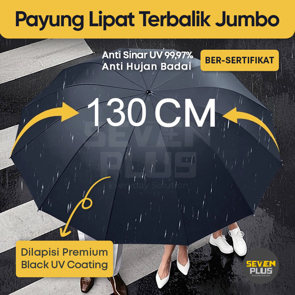 Payung Lipat Terbalik Jumbo Diameter 130cm Anti Sinar UV 99.97% Anti Hujan Badai Buka Tutup Manual Super besar muat 3 or