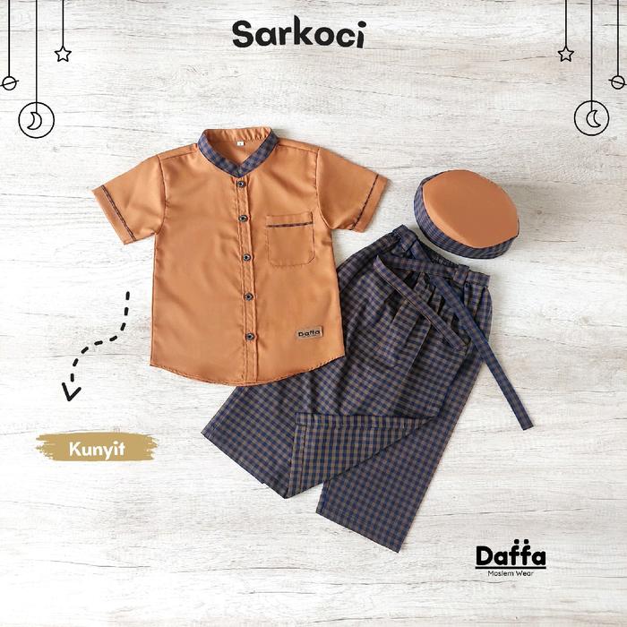 DAFFA COLLECTION- SARKOCI B- SETELAN BAJU CELANA SARUNG / SARKOCI ANAK LAKI - LAKI USIA 1 SAMPAI 4 TAHUN SETENGAH BAHAN KATUN TERBARU TOYOBO KAIN NYAMAN - KUNYIT, 1