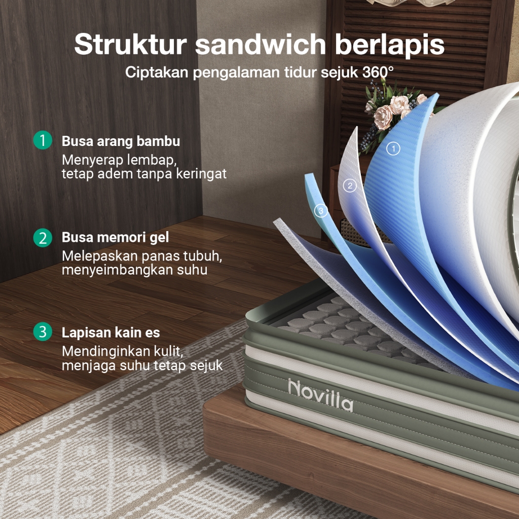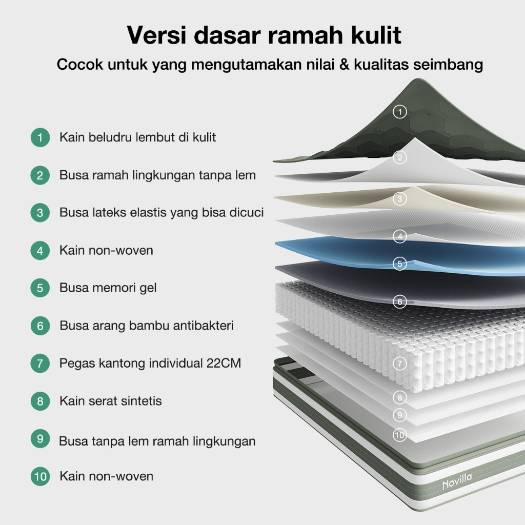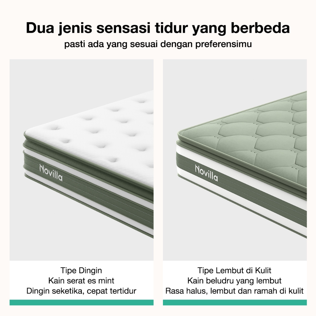 Novilla Kasur Pocket Spring Versi Beludru Mewah-Kasur Antibakteri Berketahanan Tinggi Free bantal