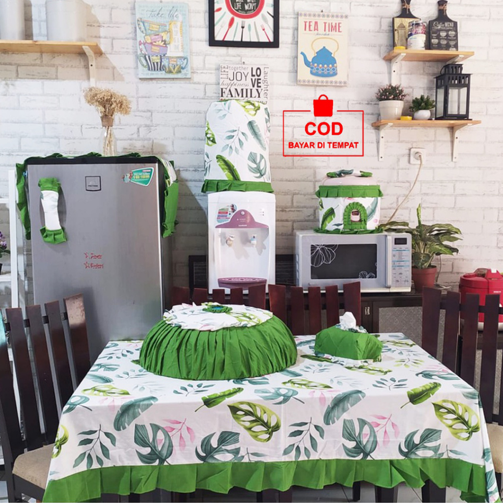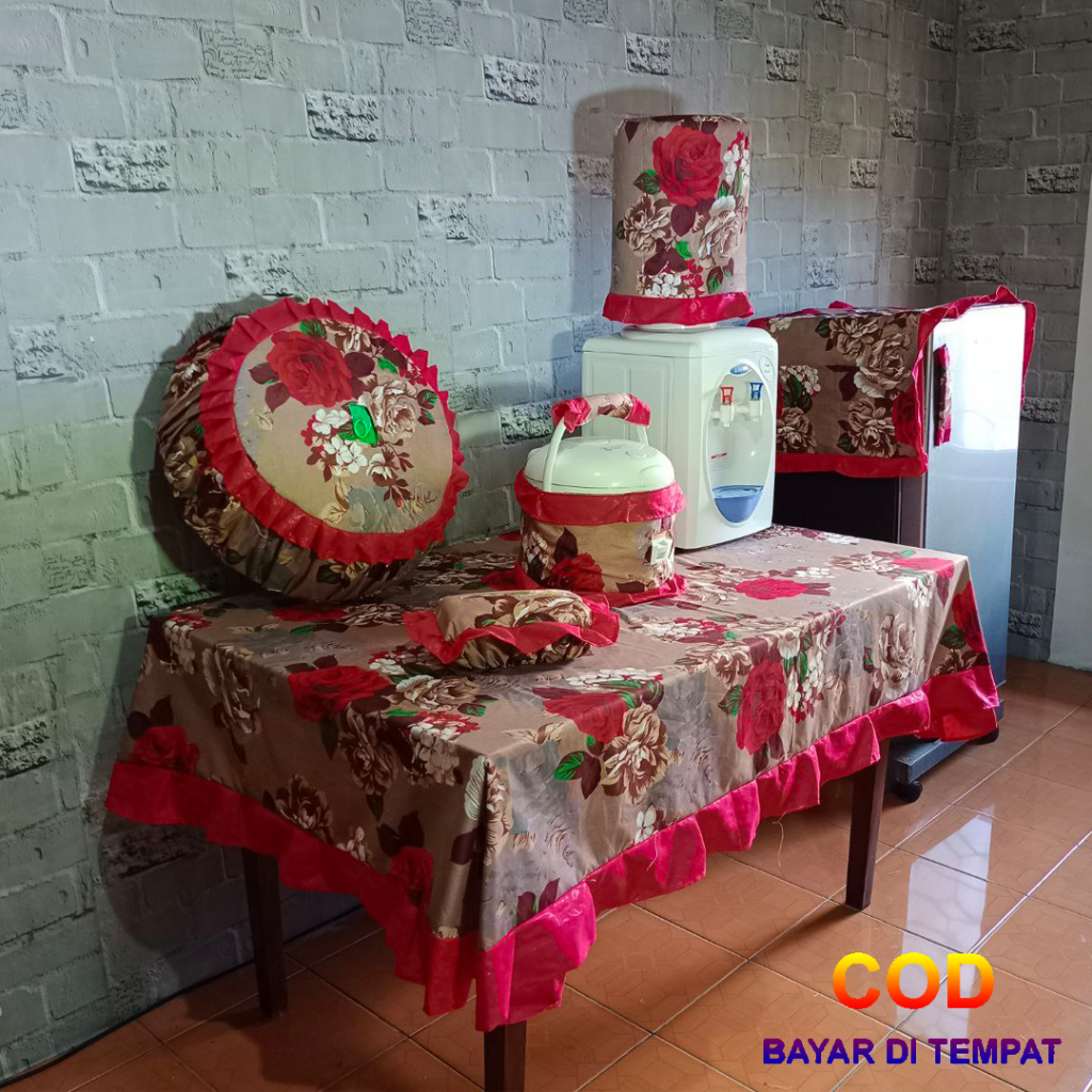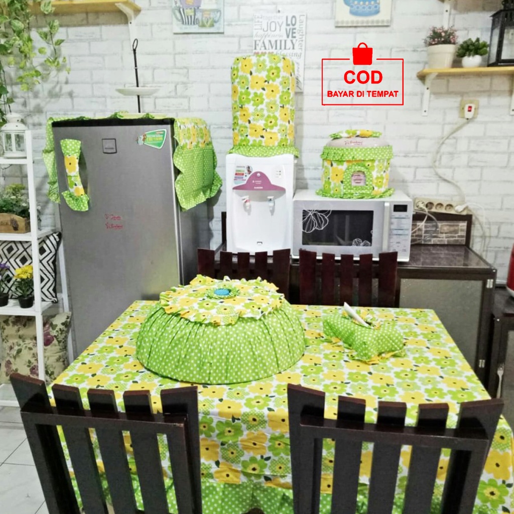 Kitchen Set 8 Pcs Taplak Meja Makan Sarung Galon Magicom Kulkas Tudung Saji Bulat Tempat Tisu