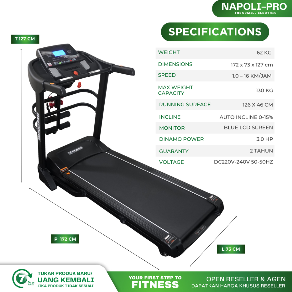 Alat Fitness Treadmill Elektrik Vosgo Napoli Pro