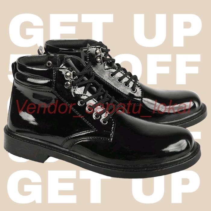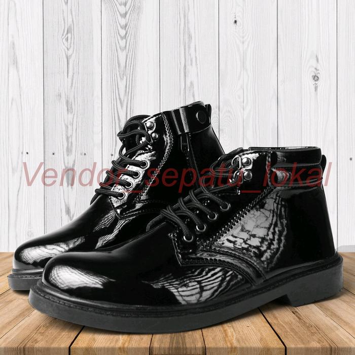 Sepatu Pdh Tali Resleting Mengkilap 38-47 Hitam Boots Shoes Pria
