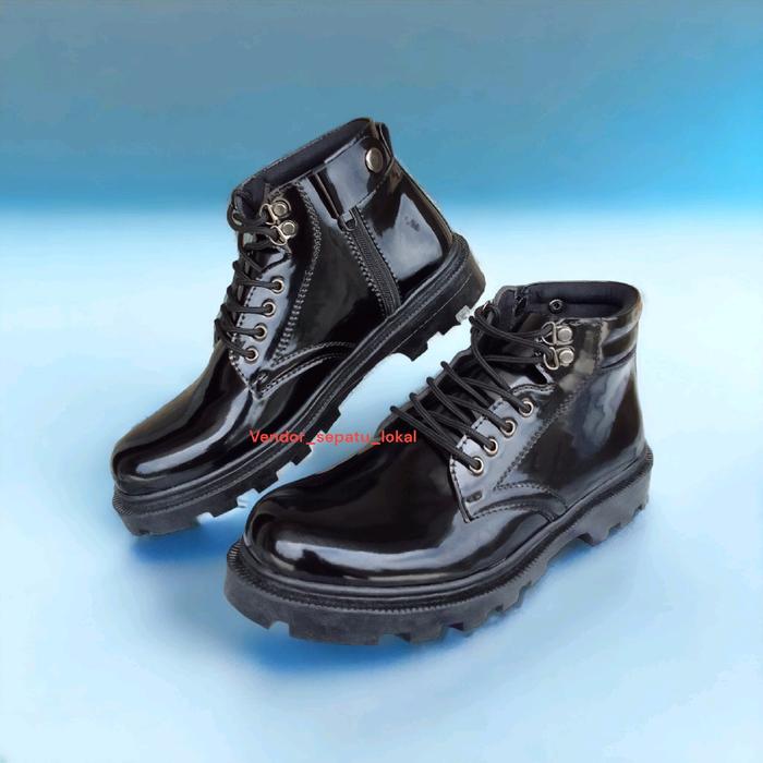 Sepatu Pdh Tali Resleting Security Tni Polisi Dop&Kilap Sol Terbaru Boots Shoes Kerja Hitam Pria