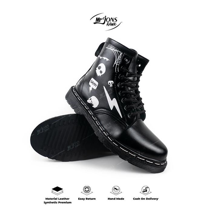 Mr.Jonsrawk Original Sepatu Boots Pria Wanita Leather Shoes Model High Boot 8 Hole Bermotif