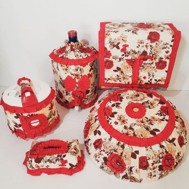 home set 5 in 1 sarung galon alas kulkas sarung kotak tissu sarung magicom sarung tudung saji