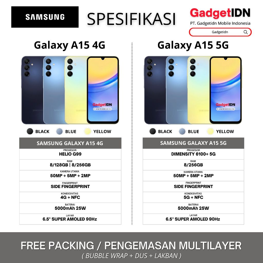 SAMSUNG Galaxy A15 5G 8/256GB 8/128GB Garansi Resmi Samsung