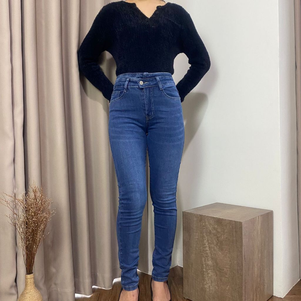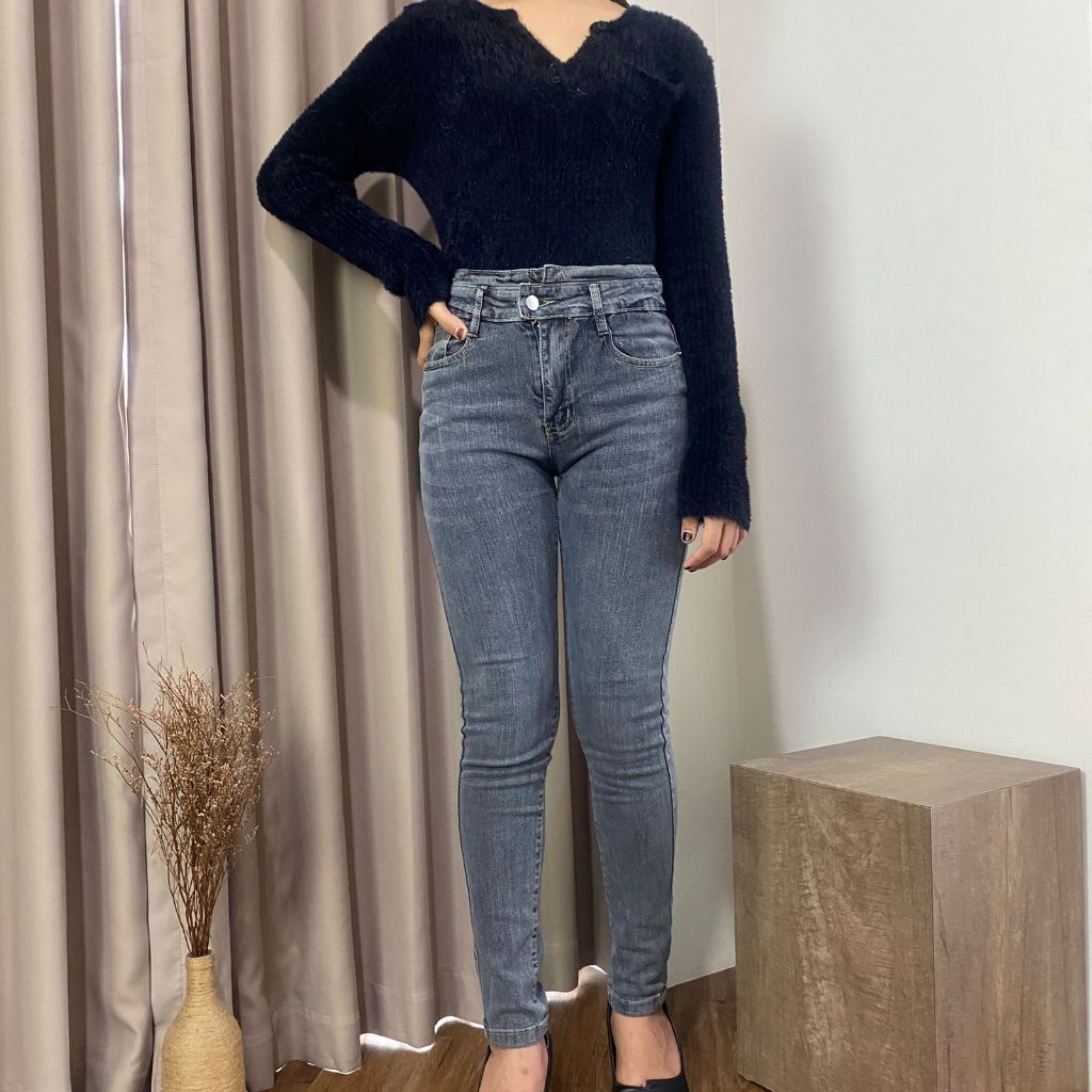 Shenel Hana Skinny Jeans S04 High Waist Jeans Melar Stretchy Highwaist Jeans Pensil Soft Panjang Murah Gratis Ongkir