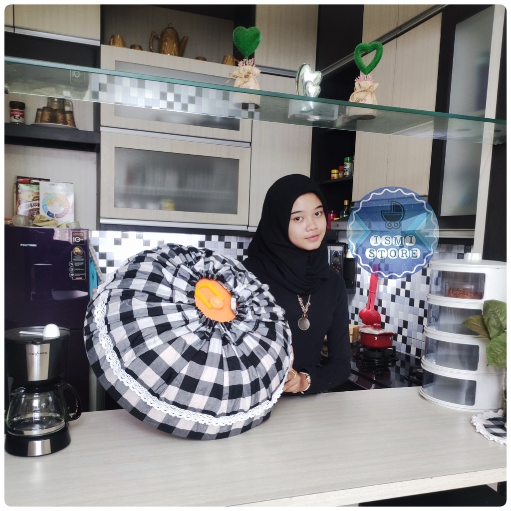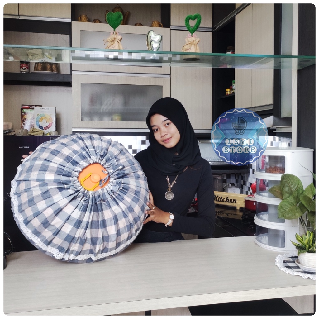 SARUNG TUDUNG SAJI BULAT / Cover Tudung Saji Bulat Motif Kotak-kotak Kekinian Unik Estetik Diameter 55-60cm by Ismi