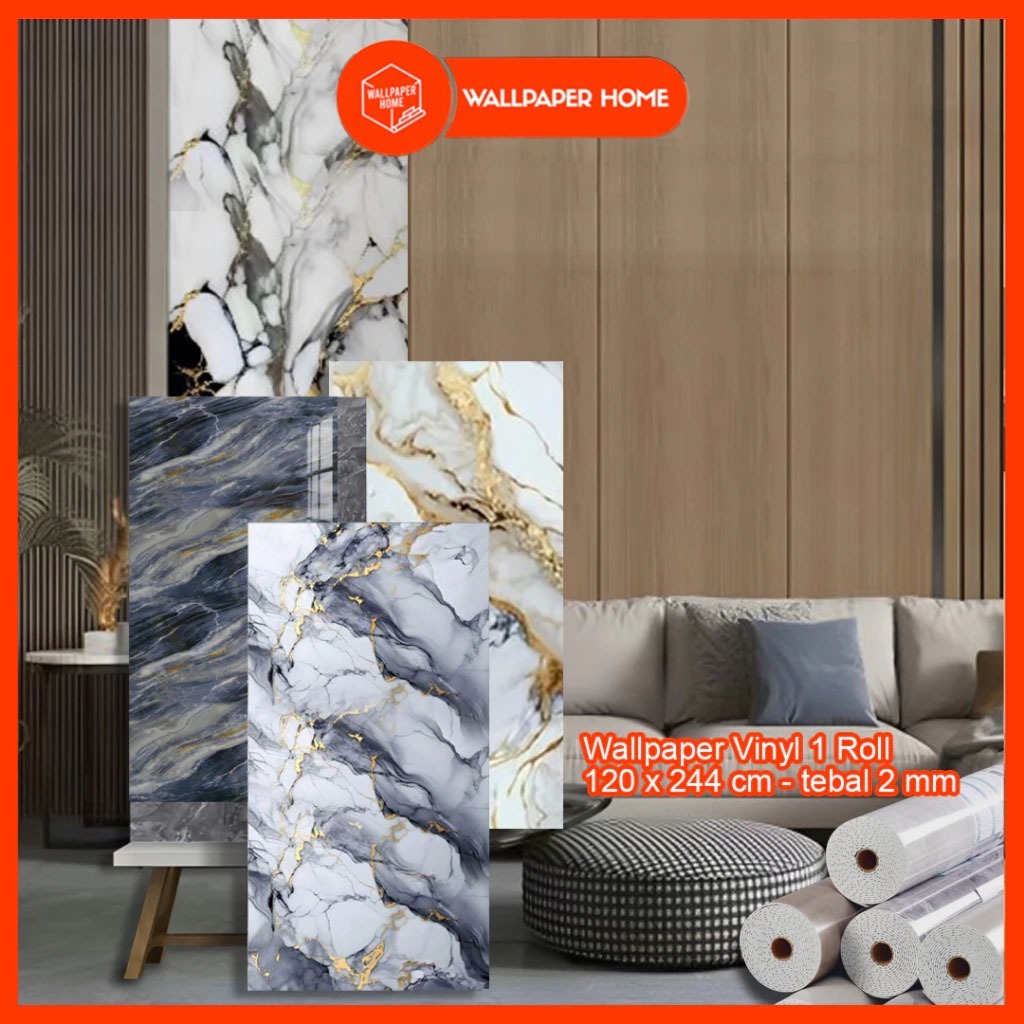 Wallpaper Dinding Motif Vinyl Marble Foam Roll 120 x 244cm / 120 x 280cm / 60x244cm
