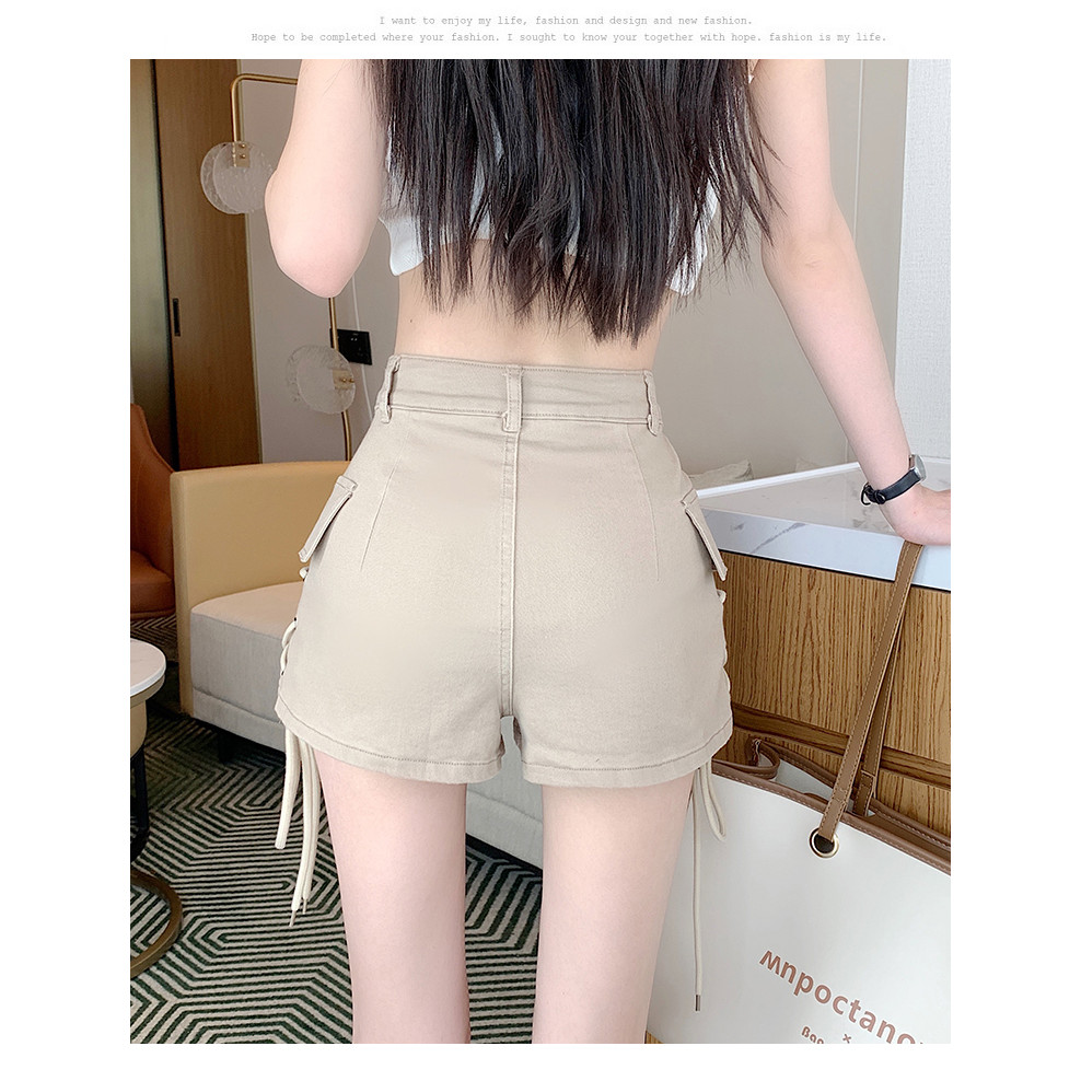 Shorts Denim High Waist Gaya Korea Model Ikat Samping Celana Pendek Kerja Skinny dan Elastis Murah Gratis Ongkir