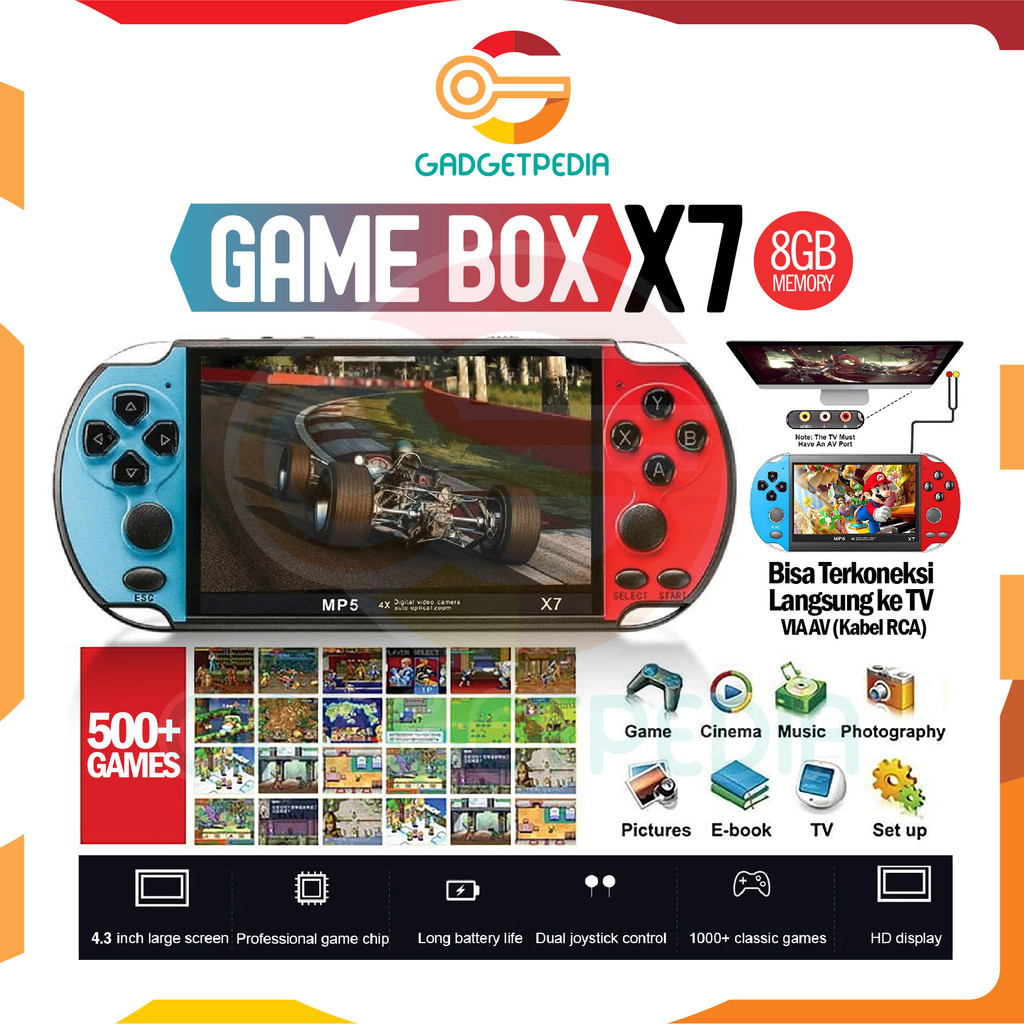 GAME BOX X7 Enhanced Edition GAMEBOY PSP X7 Handheld Console 5.000+ games 4.3inch MP5 Music Video bisa connect TV - ORIGINAL BEGARANSI RESMI Gadgetpedia