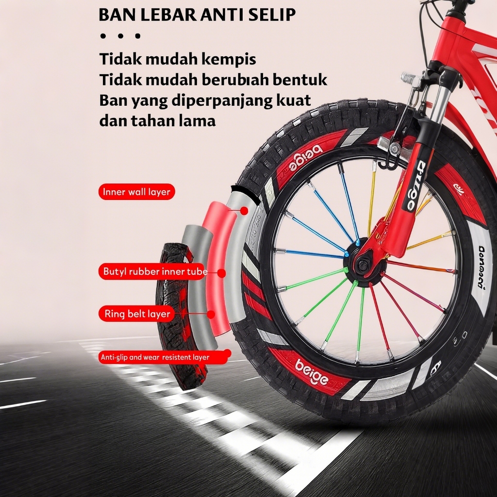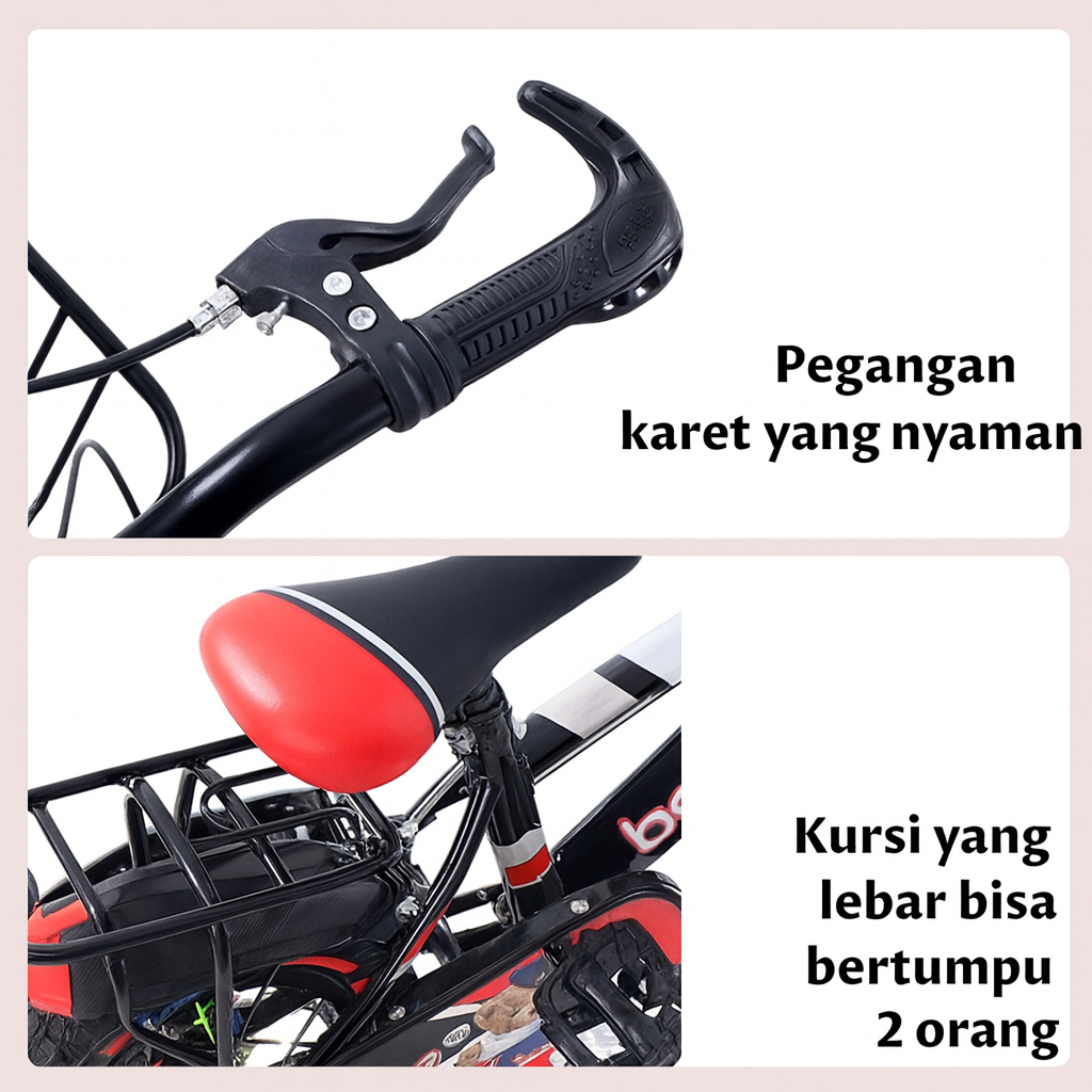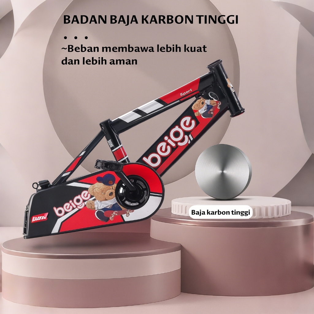 BEIGE Sepeda Anak Rangka Karbon Ban Tebal 2.5 Keranjang Jok Belakang Usia 2-12 Tahun