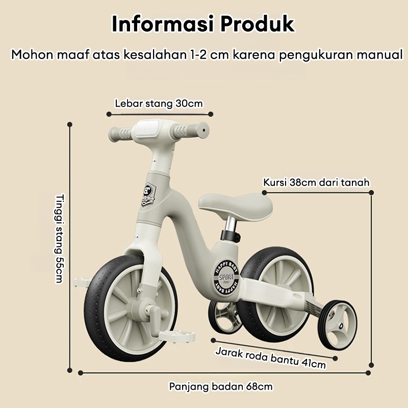 Sepeda Keseimbangan Anak 3in1 Usia 1-10 Tahun/Sepeda Anak 3in1 Balance Bike Aman Dan Stylish