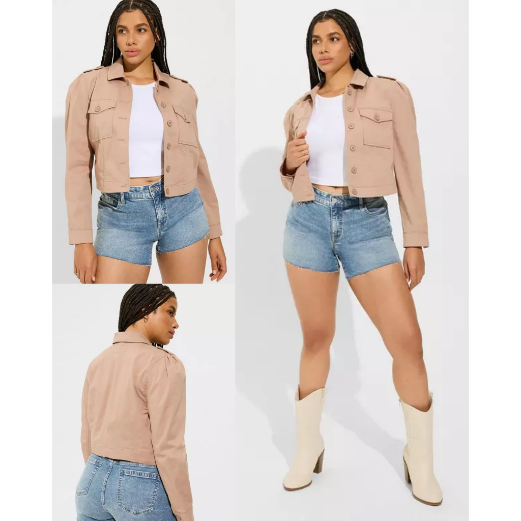 Jaket Wanita Plus Size Torrid Women's Lightweight Twill Army Trucker Jacket 8634 Murah Gratis Ongkir