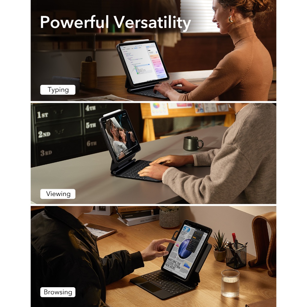 ESR Rebound Magnetic Keyboard Case 360 iPad Air Pro 11 13 2024 12.9 10.9 1st/2th/3th/4th/5th Gen Pelindung Case Casing Keyboard iPad