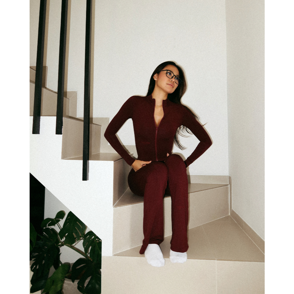 Core Sculpted Zip Up Jacket Burgundy Silky Thread Murah Gratis Ongkir