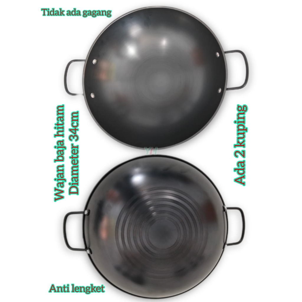 2 kuping wajan baja hitam 34cm anti lengket wajan penggorengan black carbon steel bagus murah