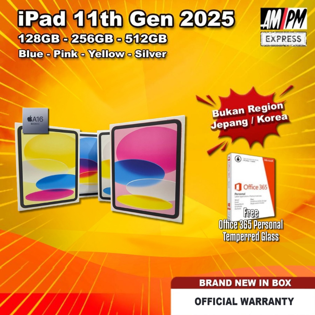 IPad 11" A16 2025 11th Gen 128GB 256GB 512GB WiFi Blue Yellow Pink Silver