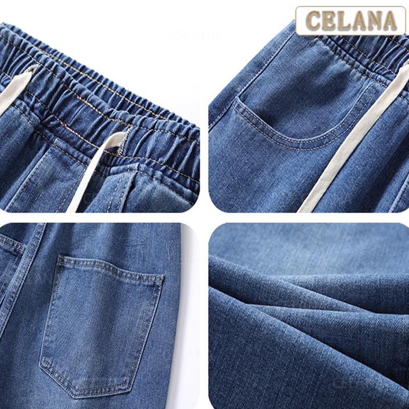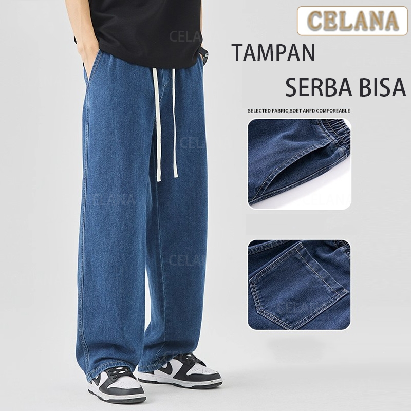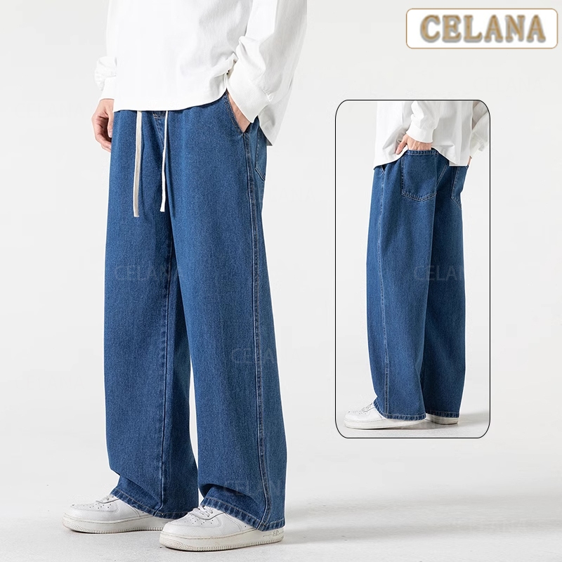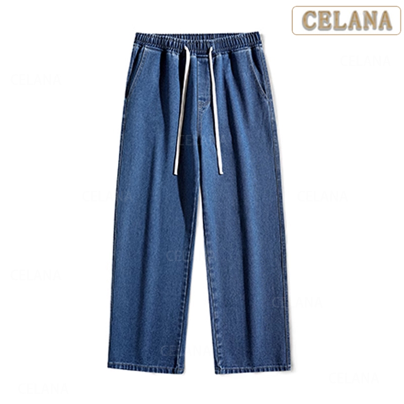 Celana Jeans Pria celana jeans korean style pria Celana jeans pinggang karet Celana longgar pria kulot pria jeans biru pria stretch celana jeans