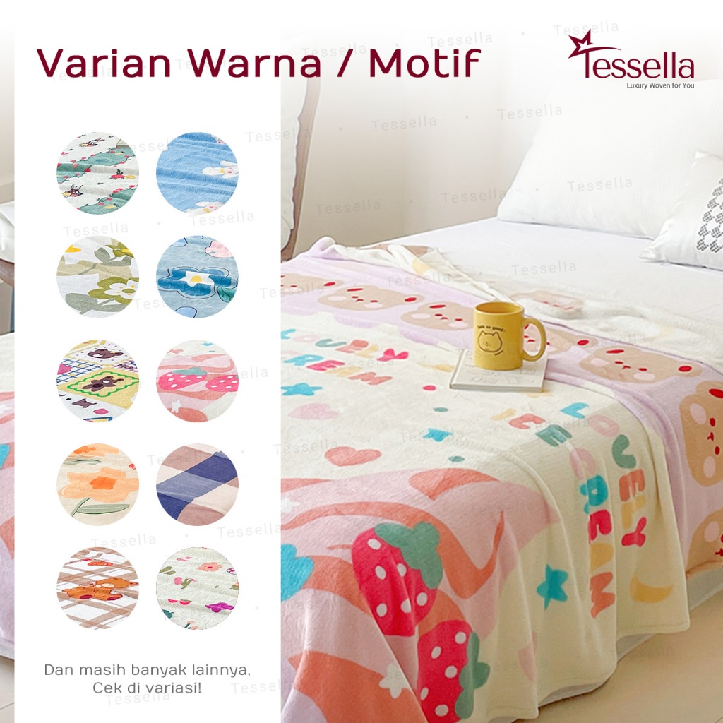 Tessella - Selimut Bulu Dewasa 140x200 Motif Aesthetic Bahan Lembut & Adem Selimut Murah Berkualitas