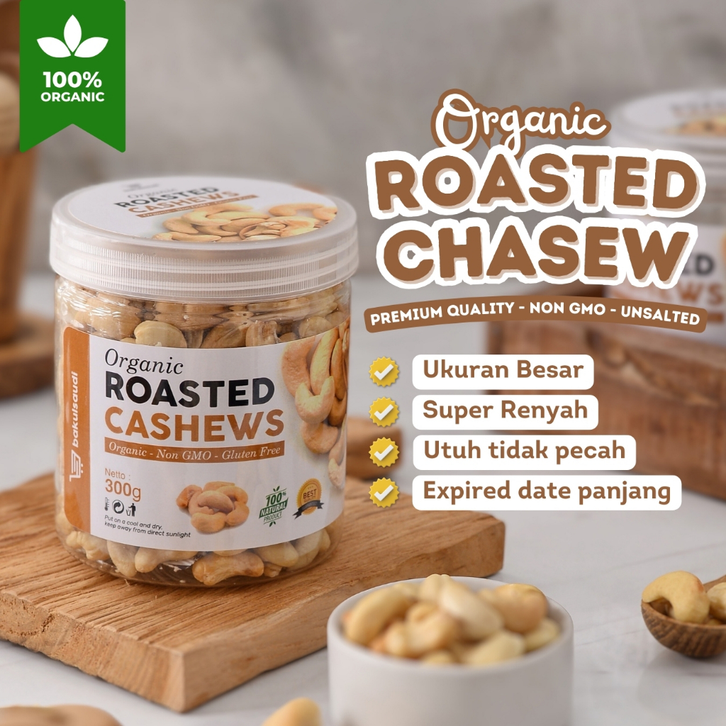 Kacang Mede Premium Panggang Organik Utuh Renyah Oven Roasted Cashew Nut Organic Matang Mente Mete