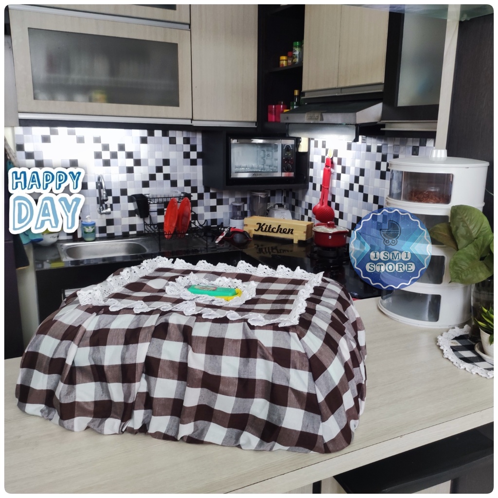 SARUNG TUDUNG SAJI Persegi BESAR / Cover Tudung Saji Persegi Besar Motif Kotak-kotak Estetik Unik Kekinian Ukuran 4