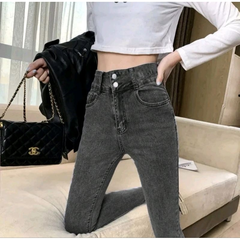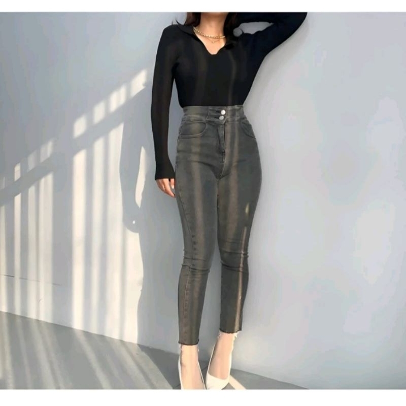 METZ Celana Jeans Skinny J32 Highwaist Strecht Terbaru Model Silang Melar KoreanStyle Murah Gratis Ongkir