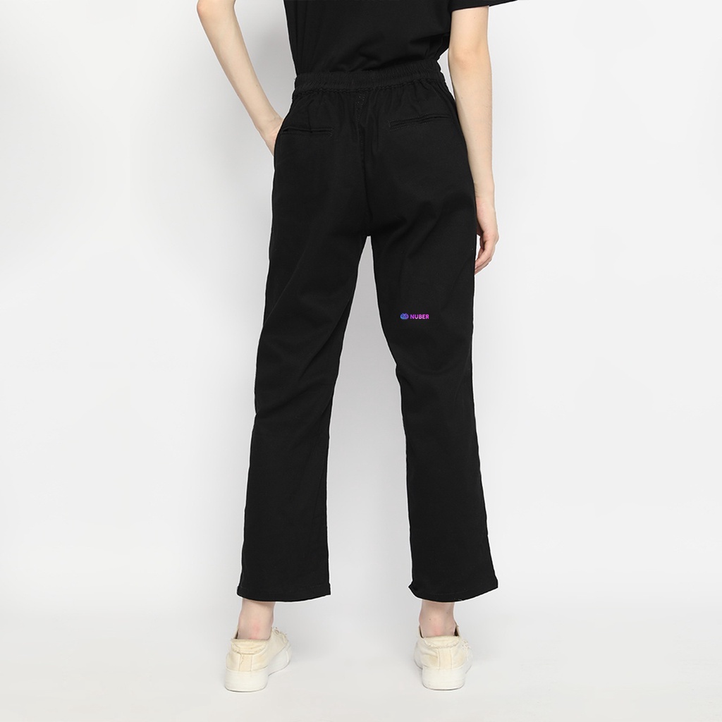 Nuber Chinos Active Straight Reguler Fit High waist Celana Panjang Pinggang Karet Rafflesia Hitam Murah Gratis Ongkir