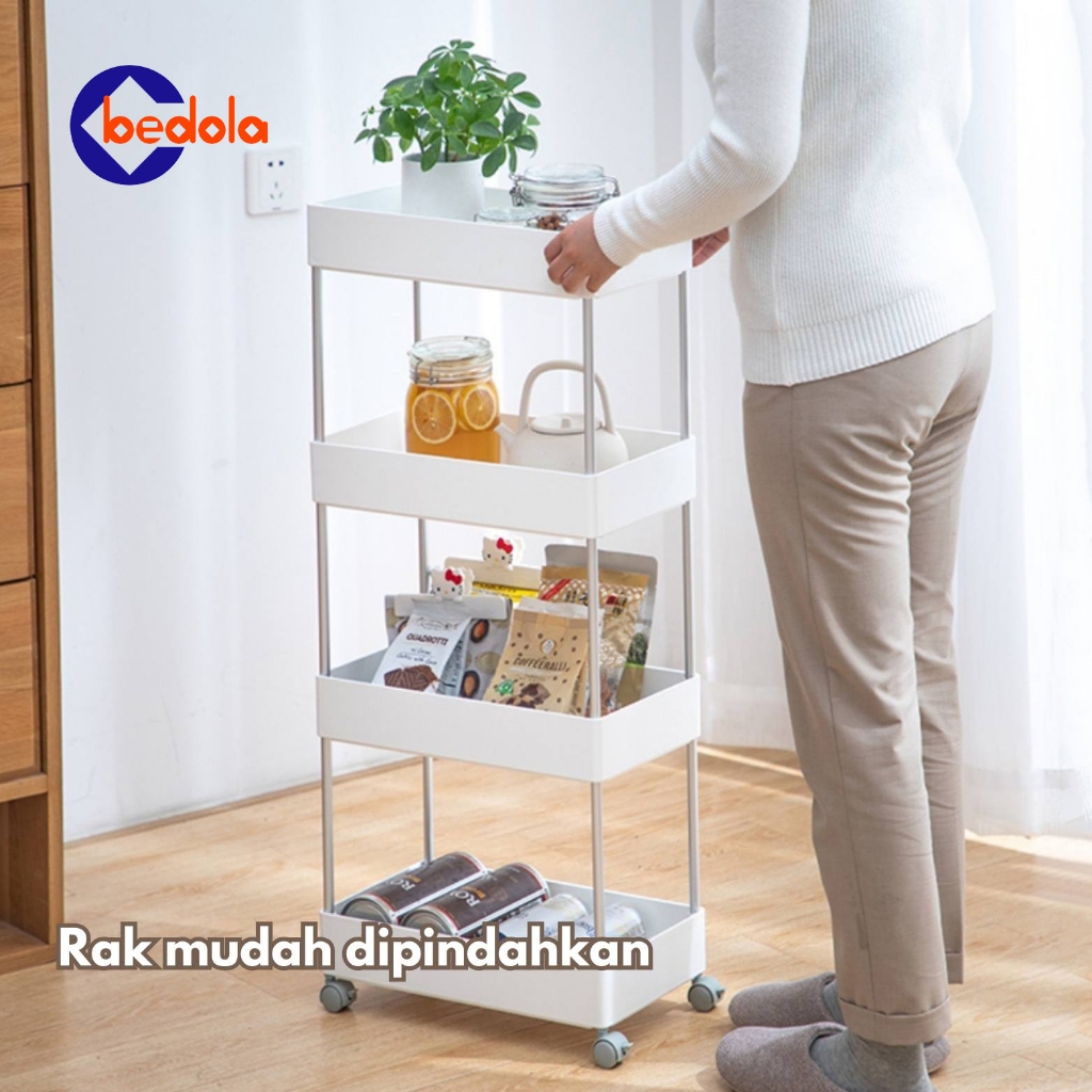 Square rak dapur rak toilet rak susun serbaguna rak dorong rak salon rak troli 4 tingkat dengan roda