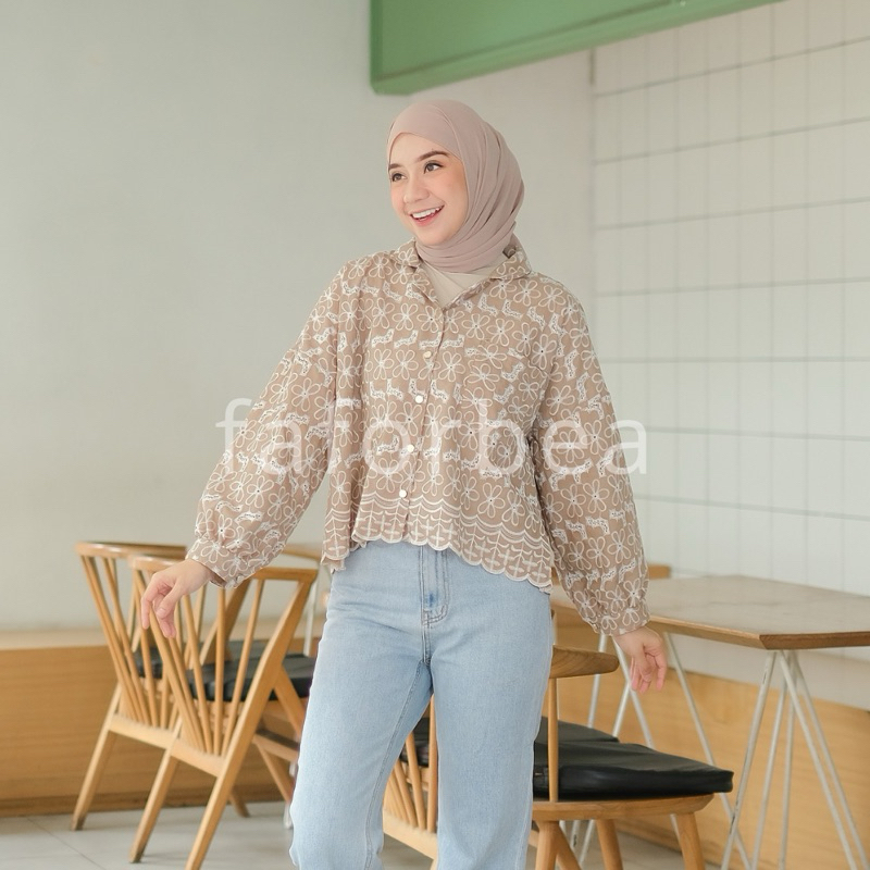 Faforbea Poppy Embroidery Semi Shirt Cotton Bordir Murah Gratis Ongkir