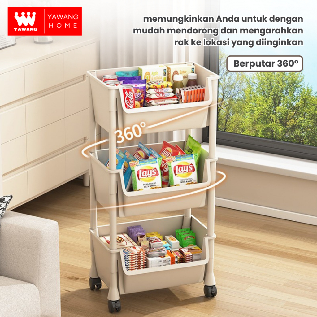YAWANG Home Rak Susun Serbaguna 3 4 Tingkat Bahan Plastik Dengan Roda Tanpa Handle Rak Kamar Mandi Bahan Plastik Po