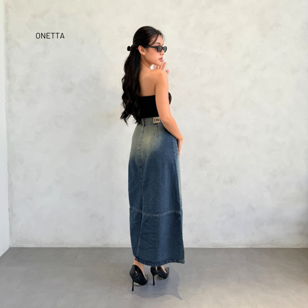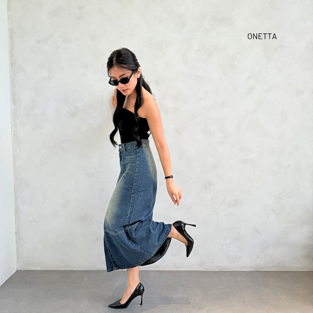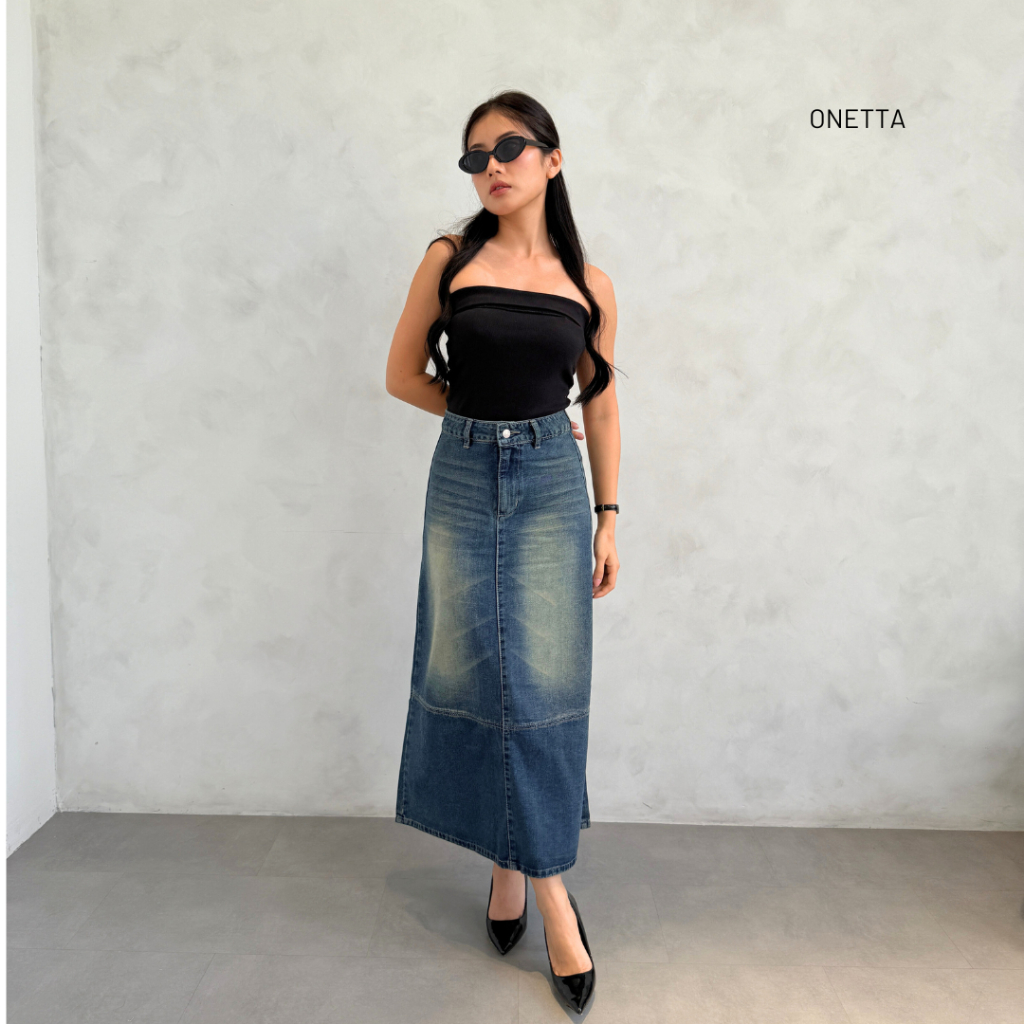 Maxi Skirt A Line I Rok Jeans Wanita LAUREN Lightweight dan Nyaman Dipakai Onetta Murah Gratis Ongkir
