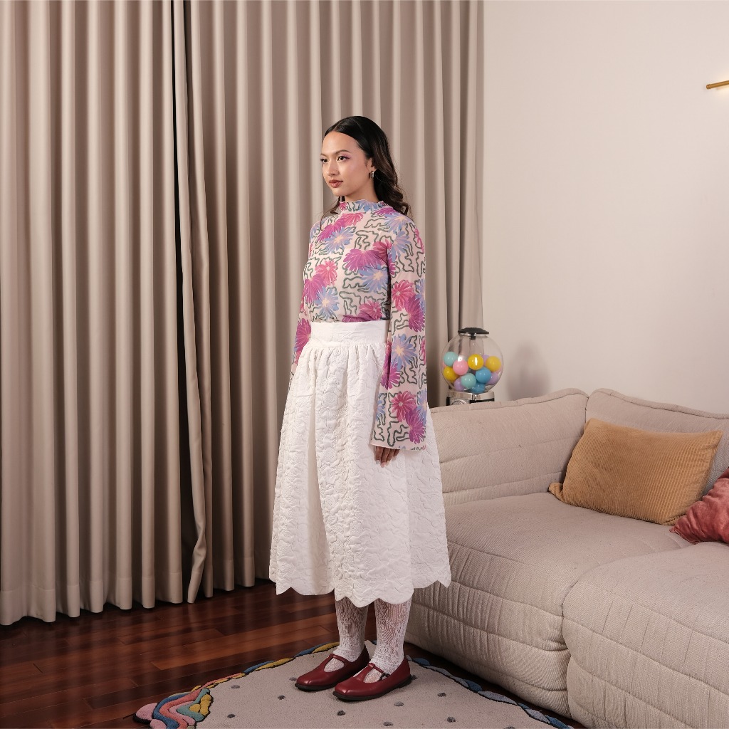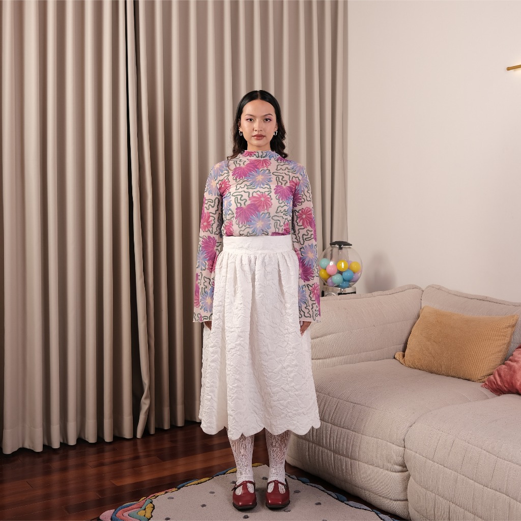 House of KYNY Florai Swirl Meshtop Print Kaos Motif Floral Outfit Konser Plus Size Murah Gratis Ongkir